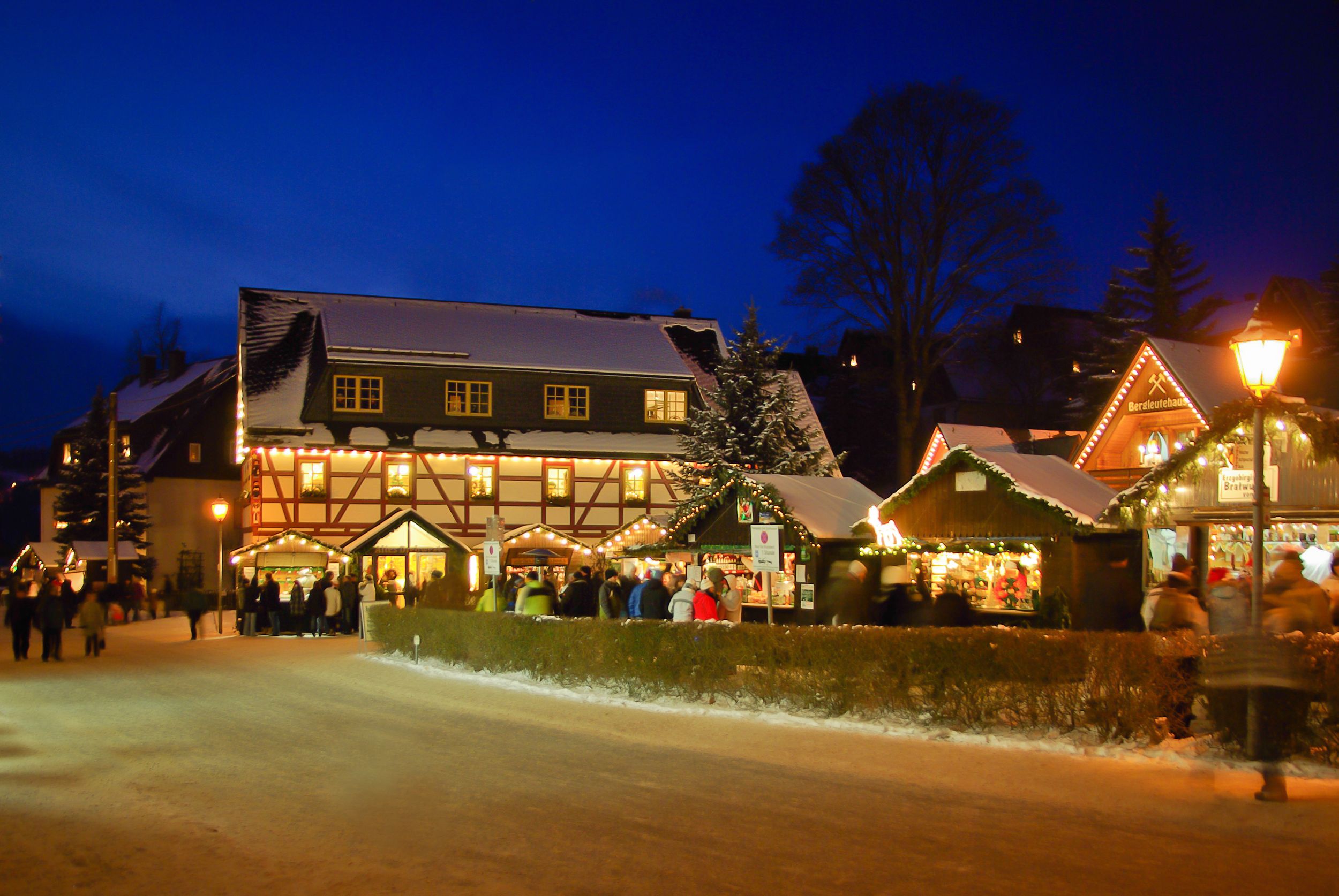 Erleben Sie die besondere Stimmung in Seiffen, wenn die Berg- und Hüttenknappschaften und die Kindertrachtengruppe „Lebendiges Spielzeug" zu der traditionellen „Großen Bergparade" durch den weihnachtlich geschmückten Ort ziehen. Die Bergparade findet von 15:30 bis 17:00 Uhr statt.