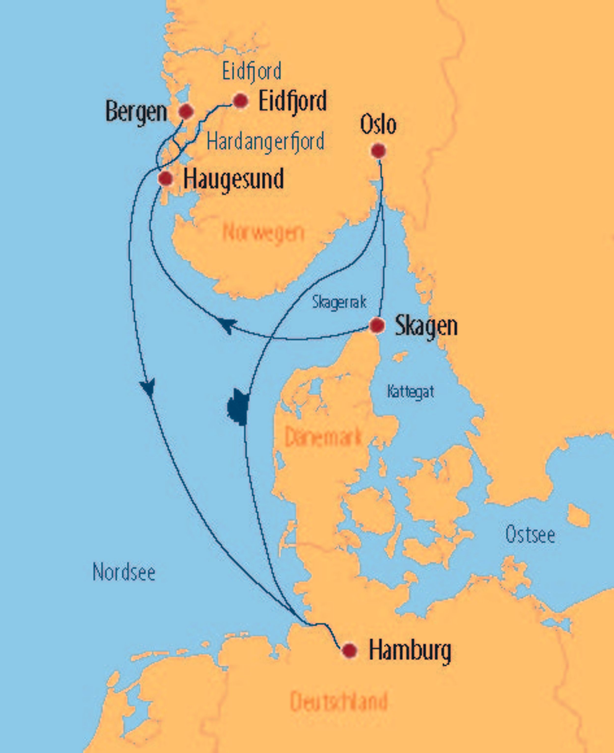 Norwegens Landschaft mit steil aufragenden Fjordwänden, beeindruckenden Wasserfällen und hübschen Örtchen lässt sich ganz komfortabel mit einem Kreuzfahrtschiff erleben. Genießen Sie an Bord der MS Artania die unvergleichlich schönen Panoramen, die nur die norwegische Fjordwelt zu bieten hat. Norwegens Hauptstadt Oslo verbindet Architektur und Museen mit einem pulsierenden Nachtleben. An Skagens Nordspitze treffen die Wassermassen von Skagerrak und Kattegat aufeinander. In Haugesund können Sie auf den Spuren der Wikinger wandeln und in Bergen sollten Sie sich das alte Hanseviertel Bryggen anschauen!