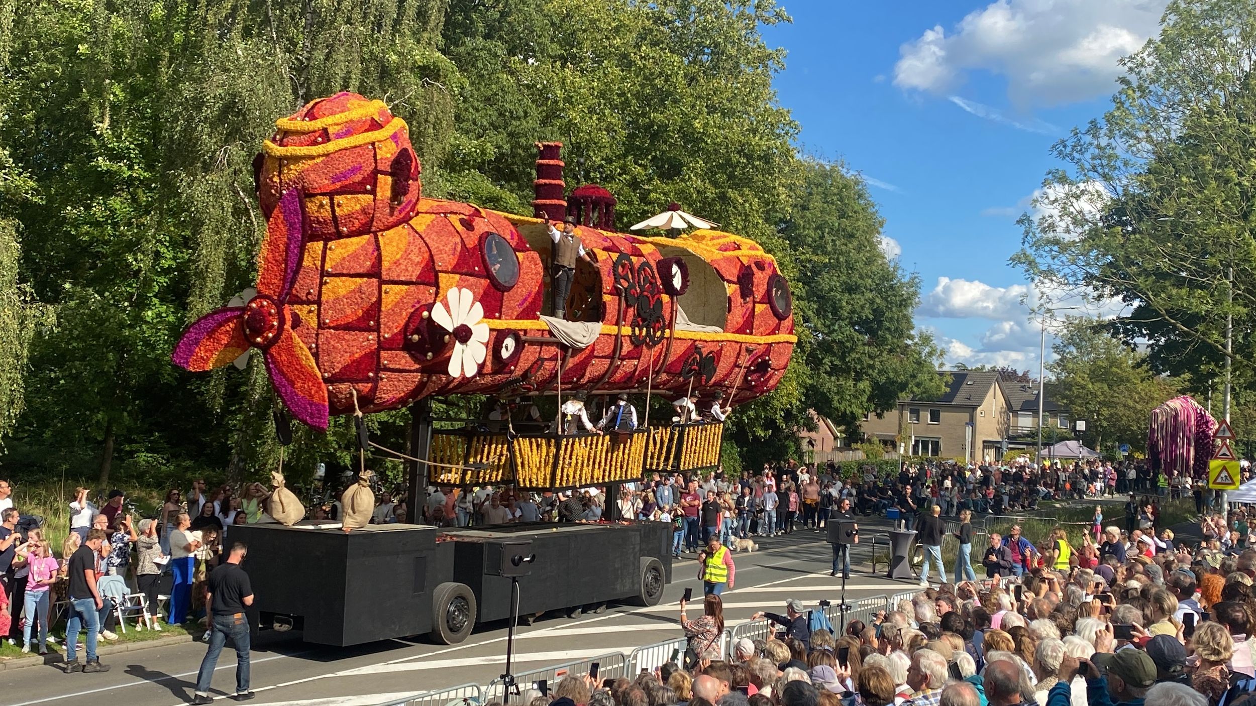 Millionen Dahlienblüten geschmückte Wagen ziehen